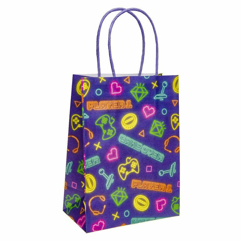 Papieren Gift Tas / Traktatie Tasjes. Model: Gamer. Afmetingen Tas (Zonder Hengsels) 16 x 9 x 22 Cm.
