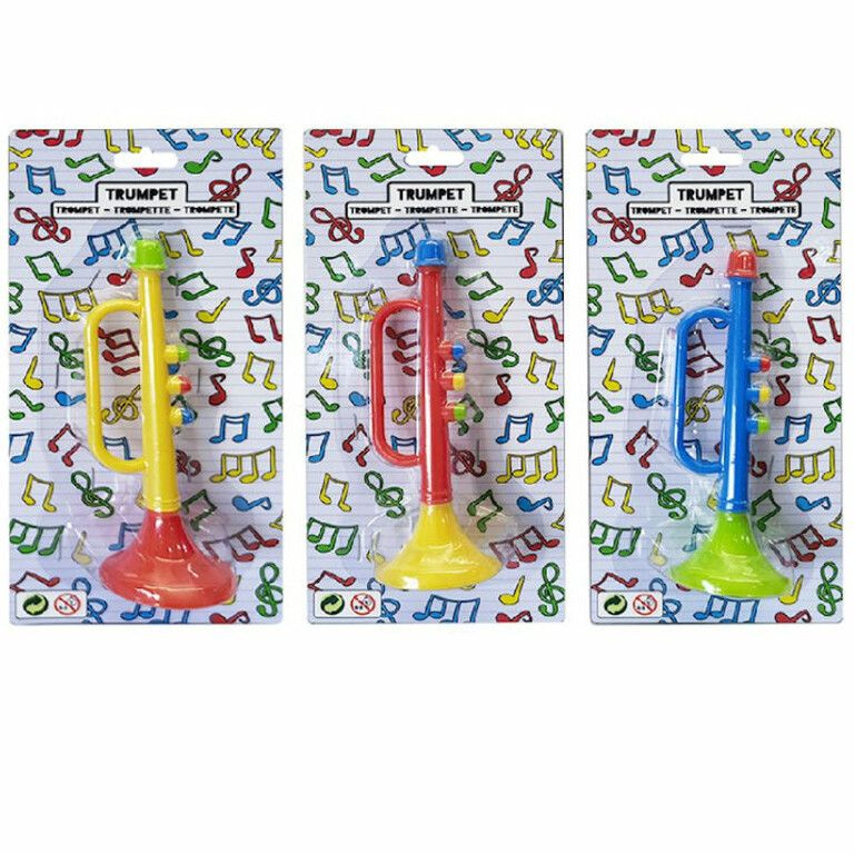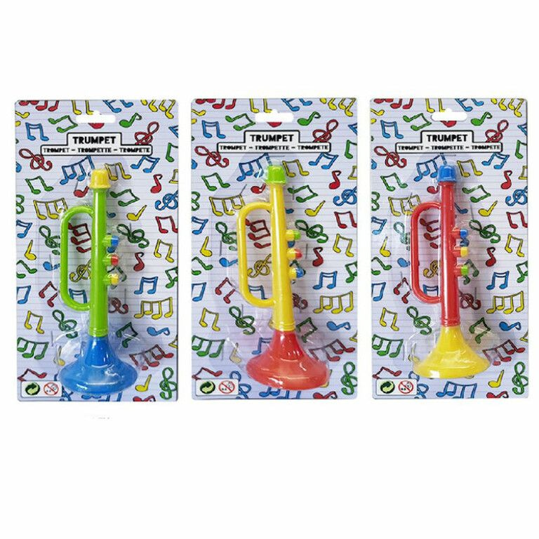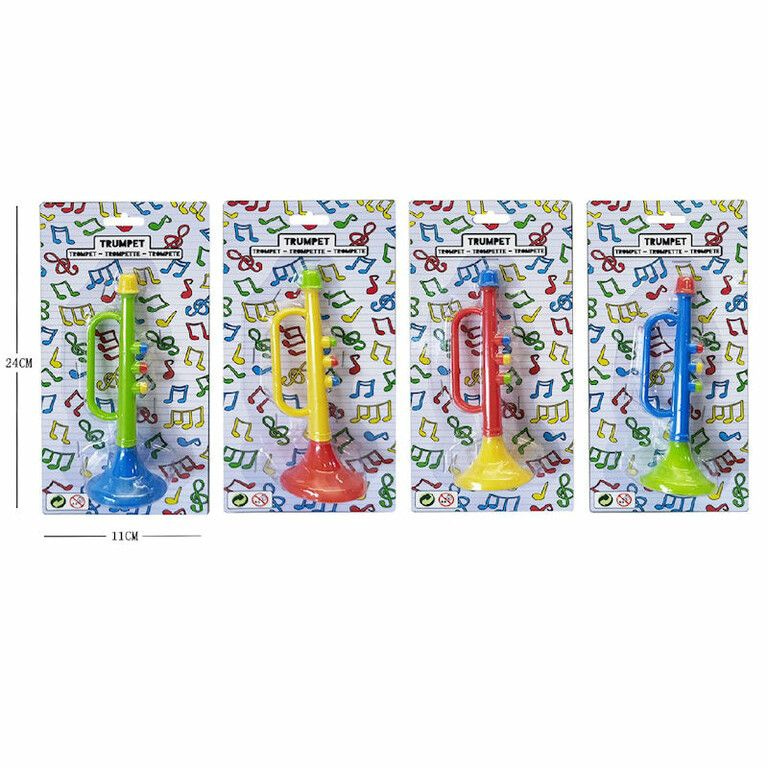 Leuke Trompet, hoogte: 15 Cm. Wordt in Mix kleuren geleverd op een mooie kaart van: 11 x 5 x 24 Cm.