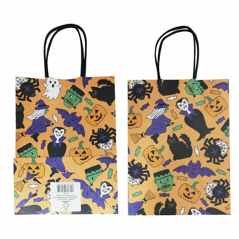 Papieren Gift Tas / Traktatie Tasjes. Model: Halloween. Afmetingen Tas (Zonder Hengsels) 16 x 9 x 22 Cm.