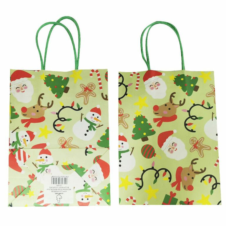 Papieren Gift Tas / Traktatie Tasjes. Model: Kerstmis. Afmetingen Tas (Zonder Hengsels) 16 x 9 x 22 Cm.