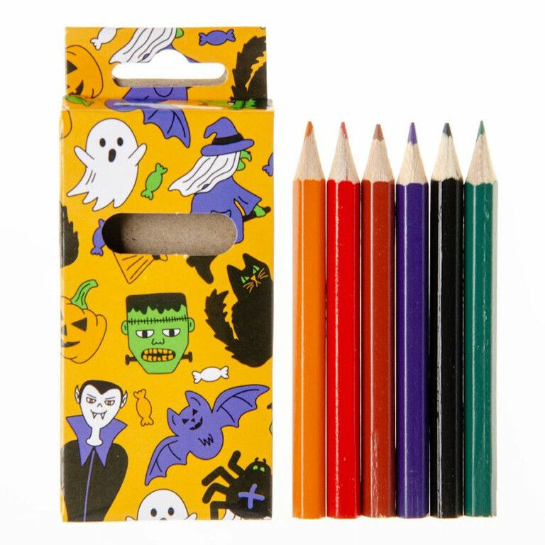 6-Delige Kleur Potloden set, model: Halloween. Verpakt in een kleurrijk doosje.