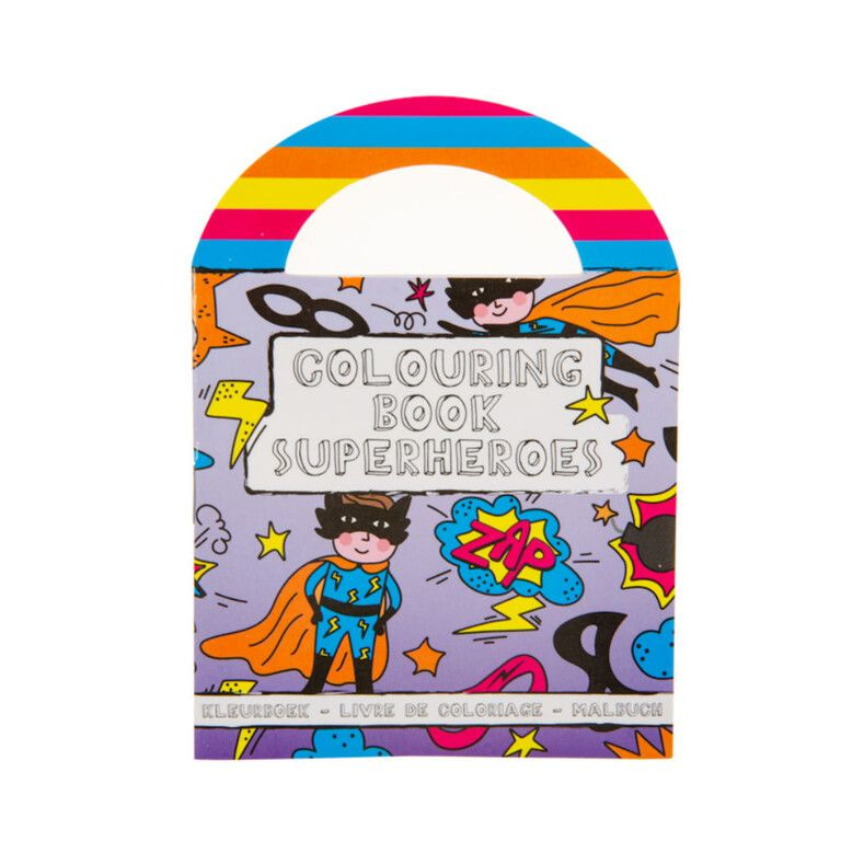 Nice little Mix hand out / give away Superhero coloring books with stickers. Dimensions coloring books: 9.5 x 13 Cm.