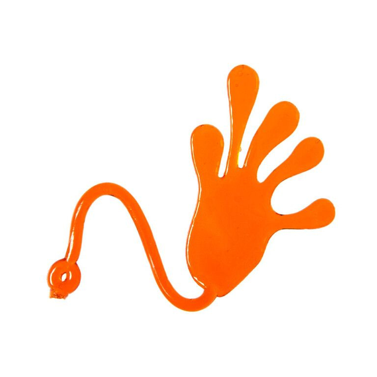 A dirty, sticky mini hand with a long cord. Fun to hit against walls, doors, and windows and make them stick.