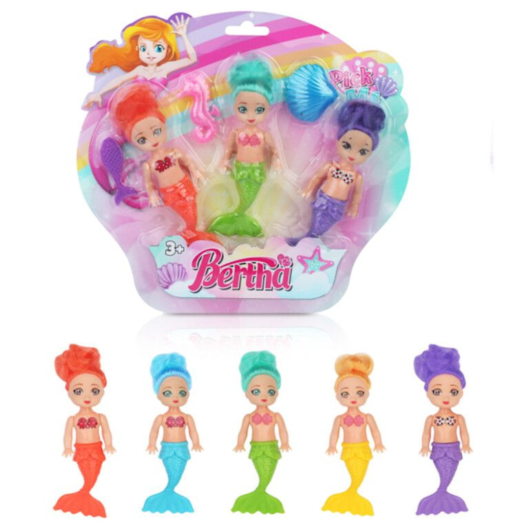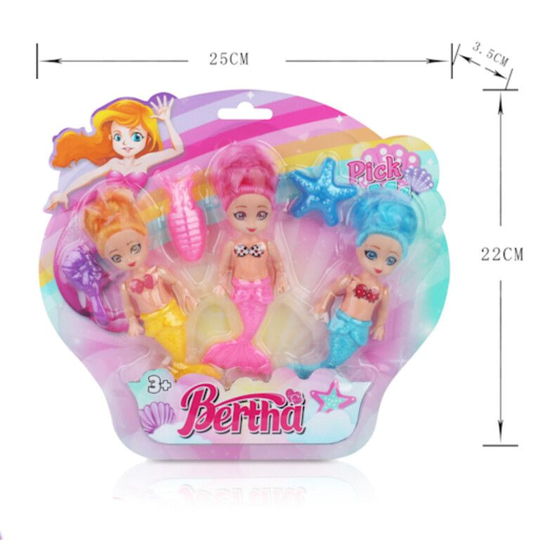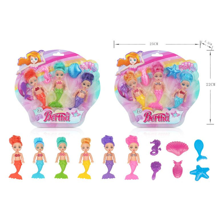 3-Piece Mermaid Doll Set on Card (6pcs)