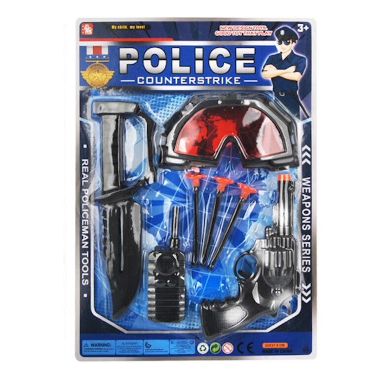 Equip little law enforcers with exactly what they need with this comprehensive Police Playset. A proven fast-seller for toy shops, market stalls, and theme parks.