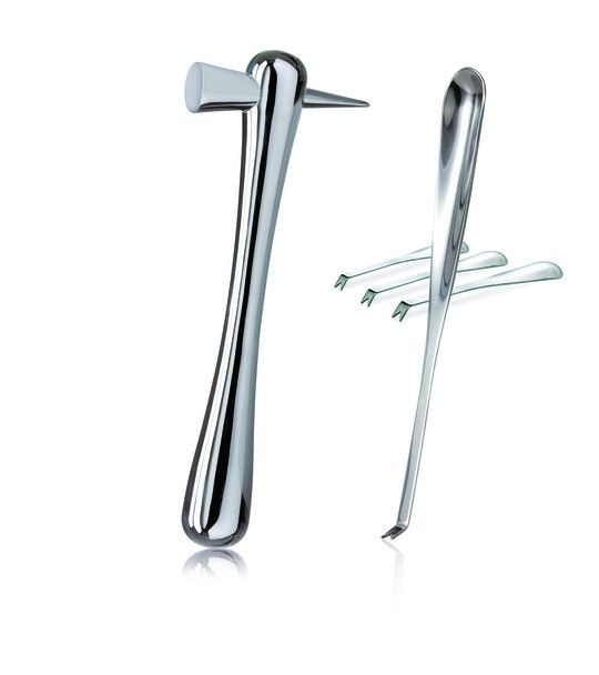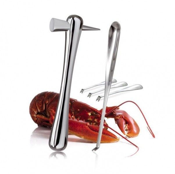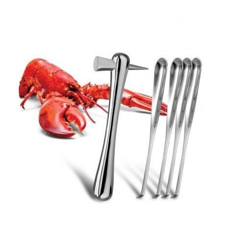 This set consists of a hammer and four forks specially designed for eating shellfish such as lobsters. The kit has been manufactured from stainless steel and is easy to clean.