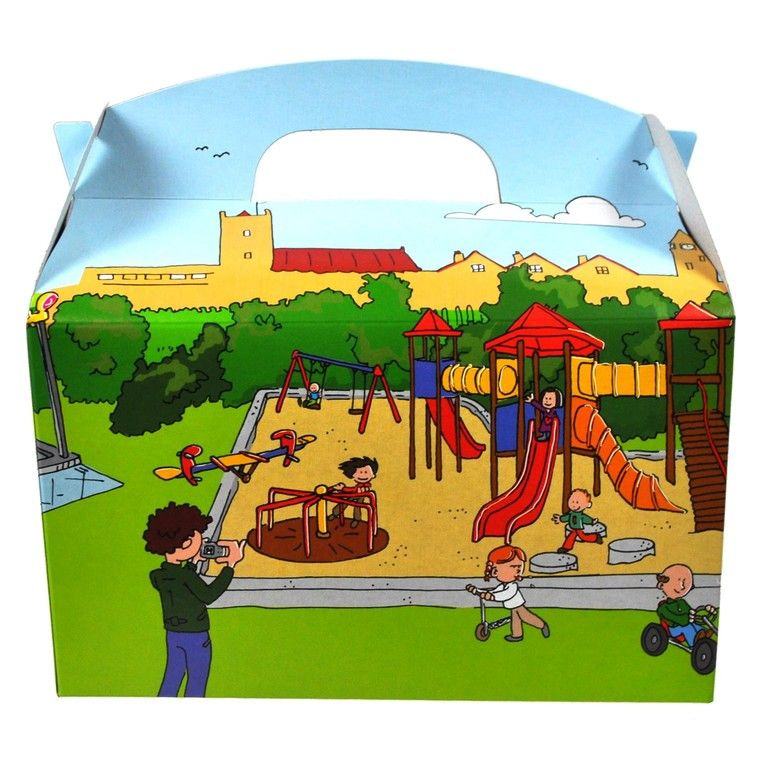 The print consists of an image of children playing in a playground and amusement rides. Featuring vivid colors so speaks directly to all children!