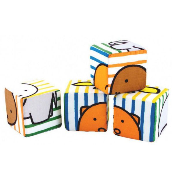 Mouthy, soft 4-piece bumpy blocks with cheerfully colored dashes and bunny and her boyfriend images. To stack up well. Packaged in a full-color window box. Suitable for children from 0 months.
