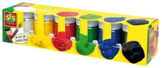 SES poster paint is known for its quality and especially the bright, well-covering colors of this paint. The basic poster paint contains the 6 basic colors: Red, Yellow, Blue, Green, Black and White. With these colors you can make and use all imaginable paint by mixing.