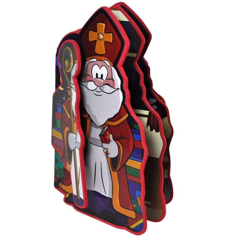 A ledger in the form of Santa Claus with a staff and the large book. This book is made of soft foam material and has a nice story about pakjesavond.