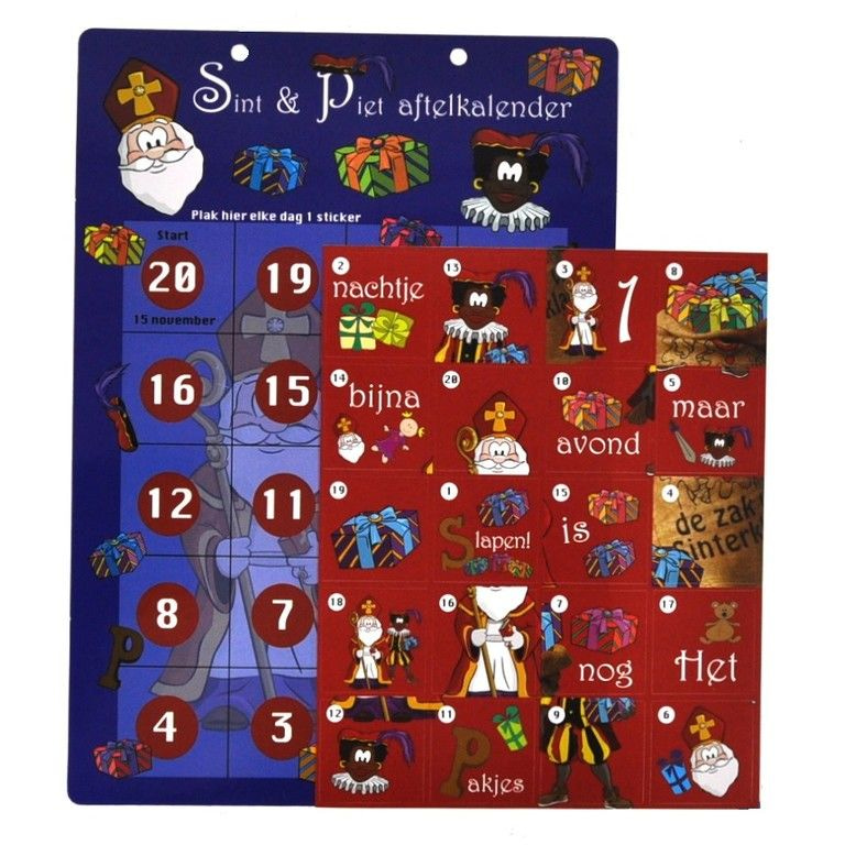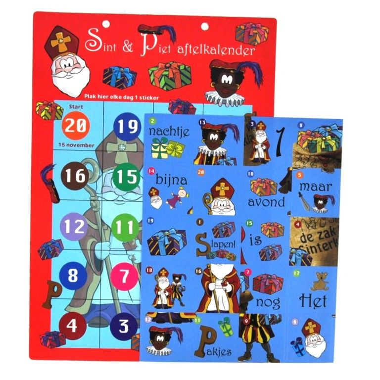 A nice countdown calendar for children. From November 15 the children can begin to paste stickers on the calendar. When they finish it the night before pakjesavond, and there on the calendar "It's almost pakjesavond, sleeping only one night!"