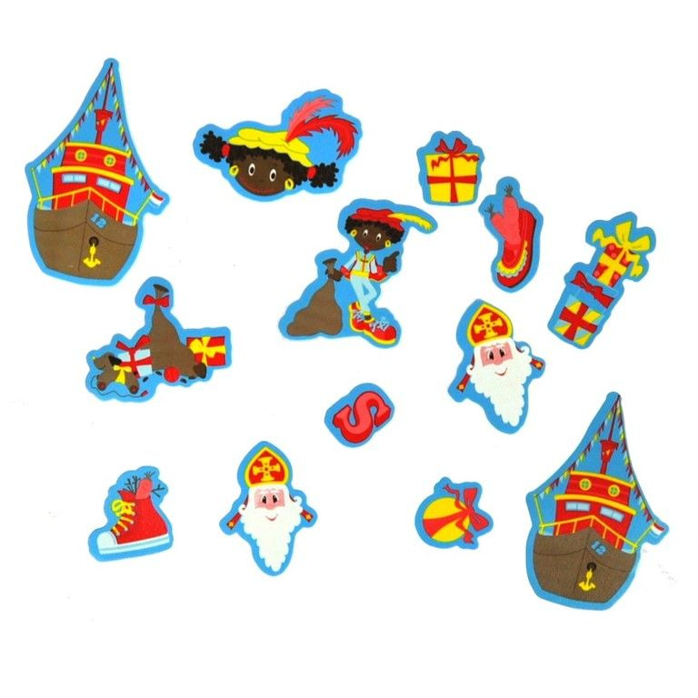 Sinterklaas and Zwarte Piet foam stickers in many different shapes and sizes. These stickers are fun for a coloring page, ticket, your room and much more.