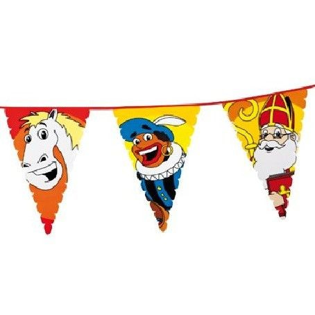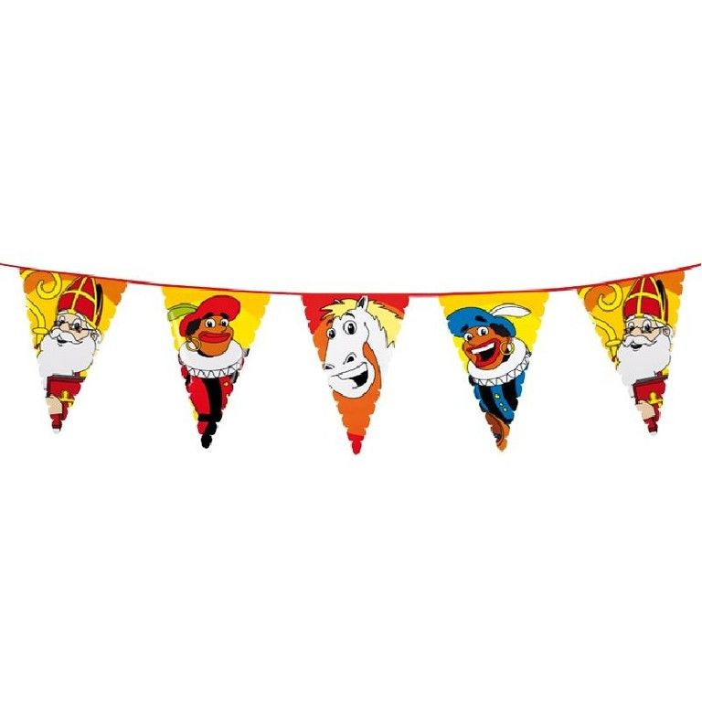 A great decoration flags line with Zwarte Piet, Sinterklaas and horse Sinterklaas. The flags line is 6 meters long and 48 cm flags. high.