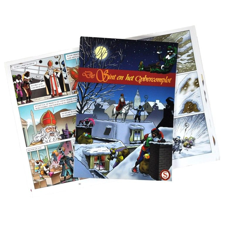 Sinterklaas This comic book is an adventure for young and old. The Saint shows in this album that he is still not an old man, and that he is like no other adapts to modern times. The Saint and the Cyber Conspiracy is exciting and educational at the same time.