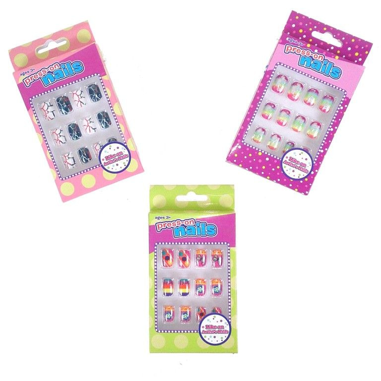 Nice slice nails for children packed in a nice box. In box 12 nails are for girls. Sits on the nails all glue so you can paste the same nails. On your nails The nails you see a lot of gay patterns.