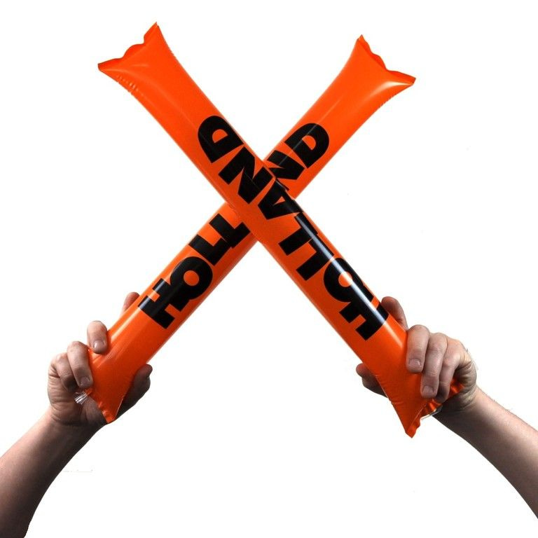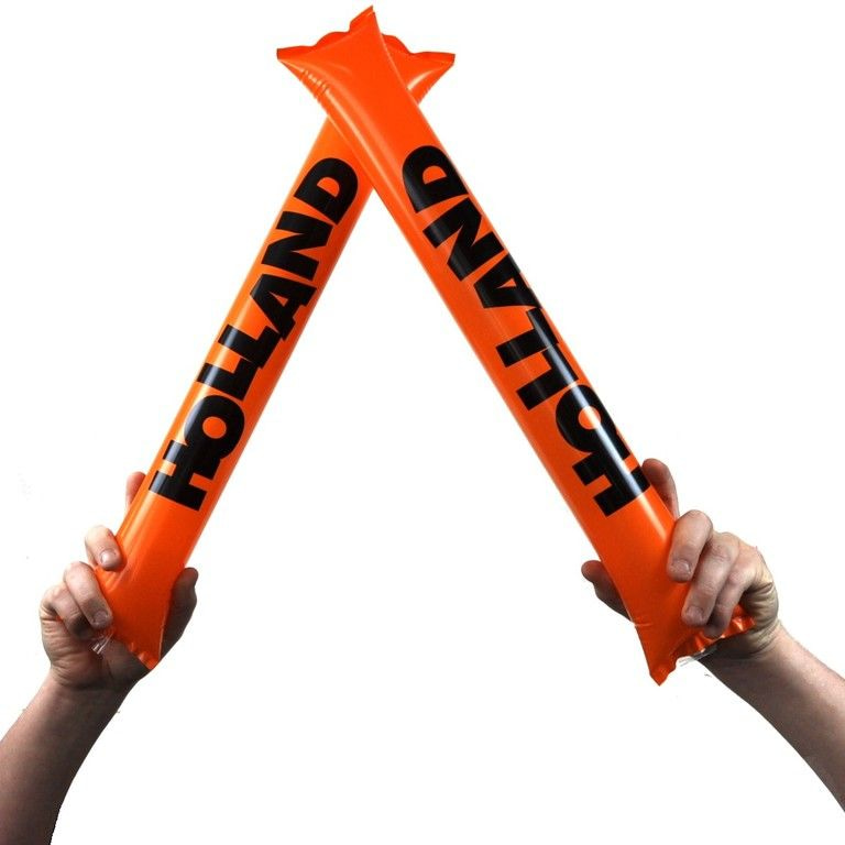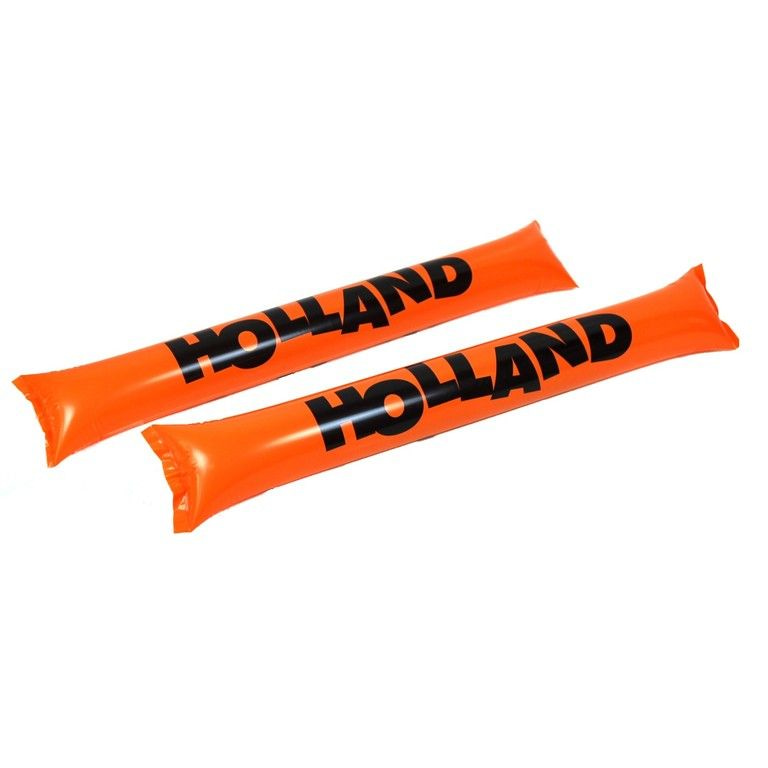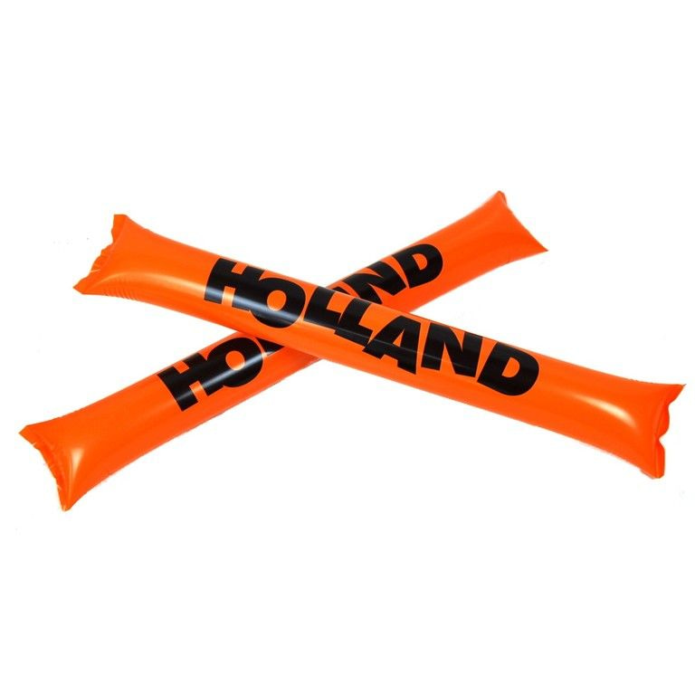 Two nice big orange cheering sticks to text "Holland" on it. Easy to inflate to a size of about 60 centimeters. Save the two cheering sticks against each other, and you get a nice sound.