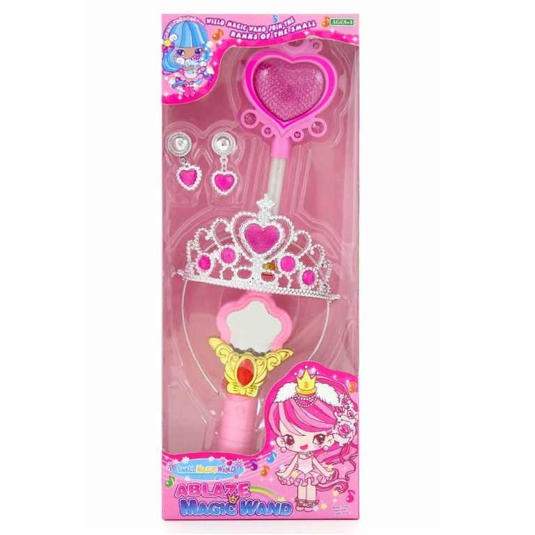 A wonderful set for the princesses. With wand, earrings and tiara. Wand with light and sound.