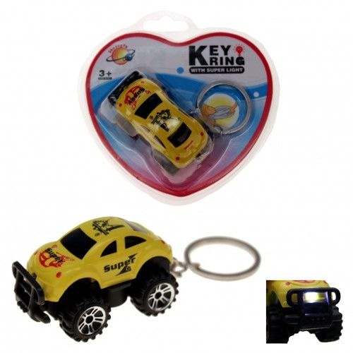 Cool car of approximately 5 cm. on a key chain. Press the bottom of the car and the car emits light as a flashlight.