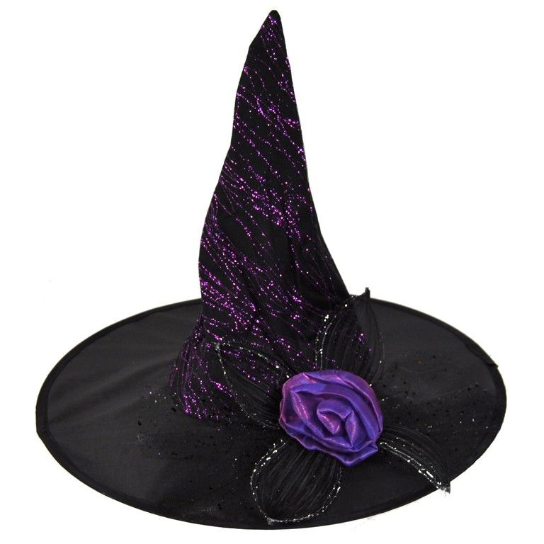 Nice big witch hat with a purple flower on the edge. Ideal for parties, carnivals, Halloween and other festive occasions.