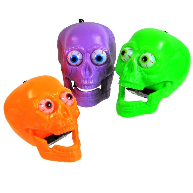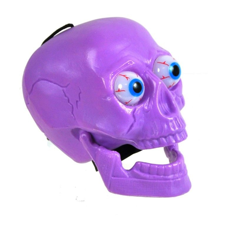 A large brightly colored skull with lights in the eyes. The skull is provided with a knob at the bottom. When you press the button to start flashing eyes.