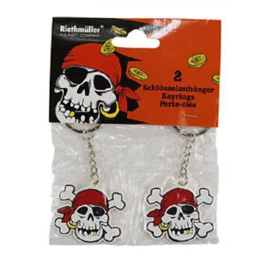 2 Nice rugged pirate keychains packed in a hanging package. ATTENTION: Price is per package of 2 key rings.