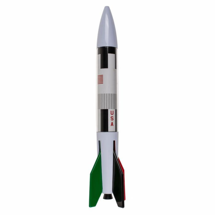 Dimensions of rocket pen itself: 7.5 x 7.5 x 30 cm.