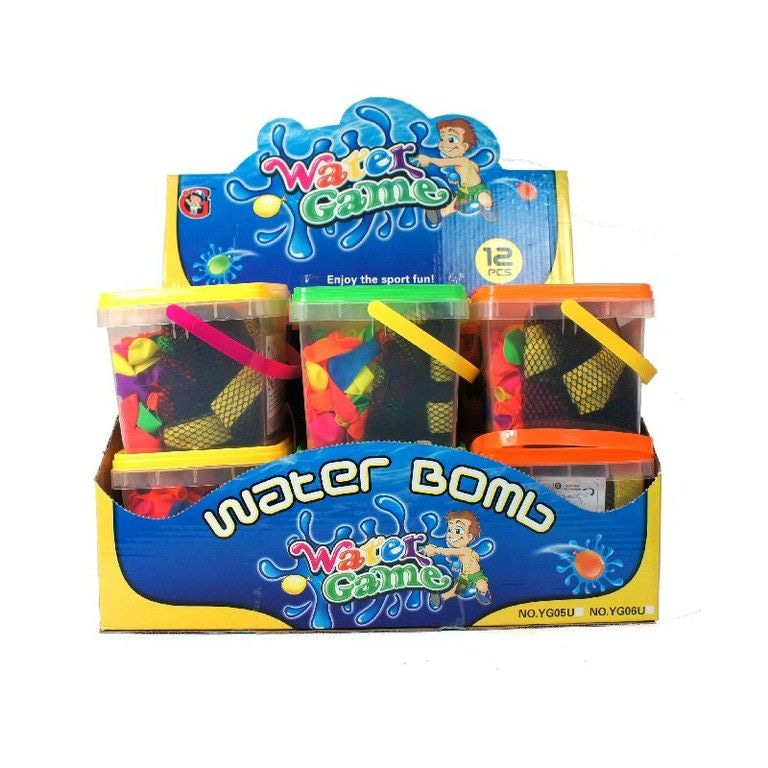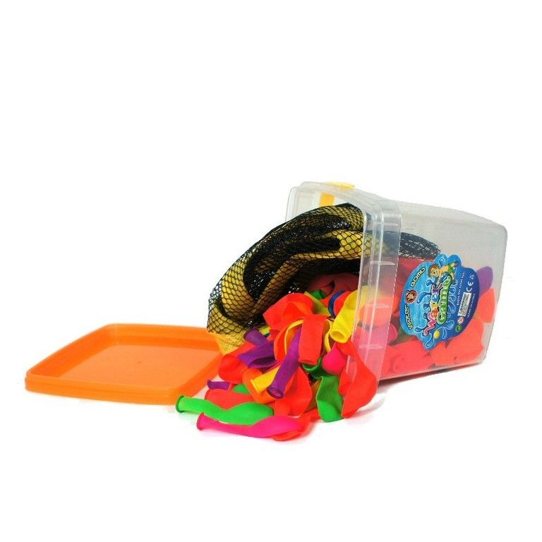 A bucket full of water balloons colored rim and carrying case. Superb toys for the summer, for both boys and girls