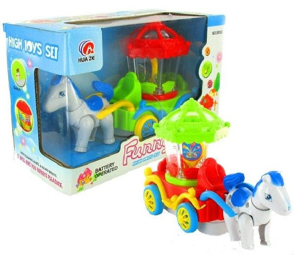 Turn it on and the horse + car drives itself