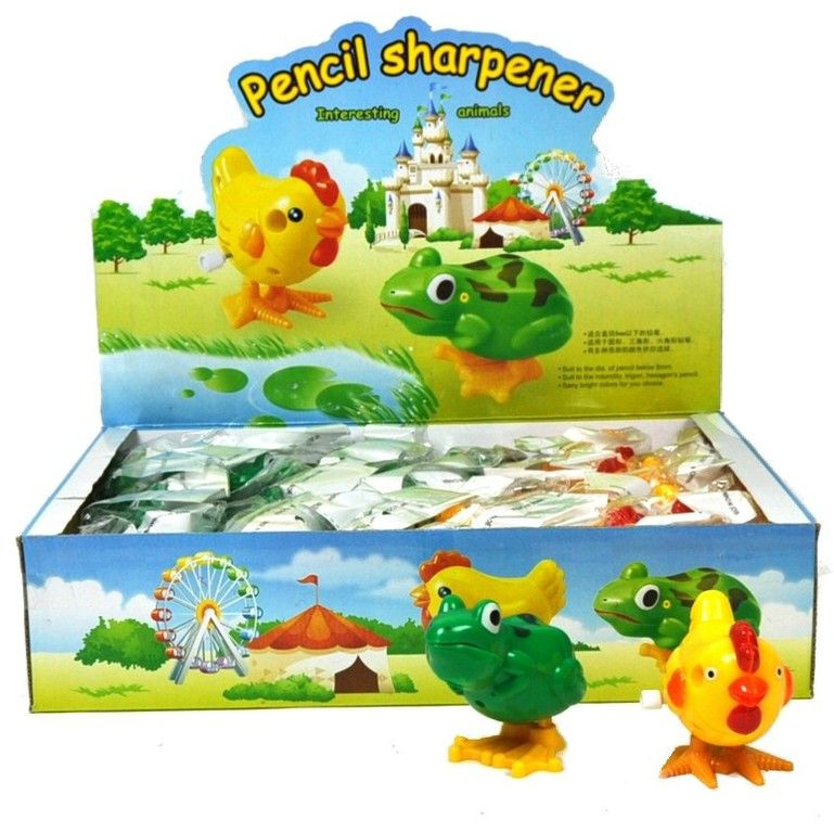 Cheerful sharpeners in the shape of an animal, that's a fun toy for school. If you wind up the animal even starts to run it.