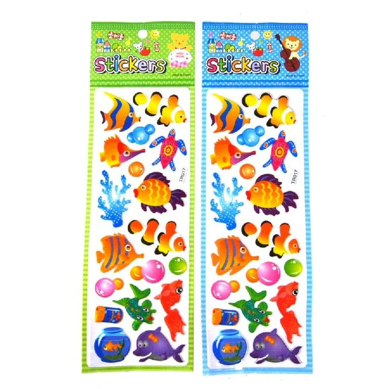Cute sticker sheets with different fish on it. A whale, coral fish, goldfish, turtle, coral .... great fun!