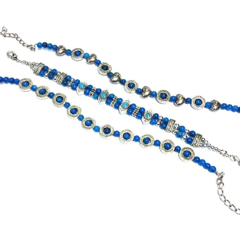 S_2119 - BRACELET SILVER LOOK / CHARMS BLUE (12pcs)