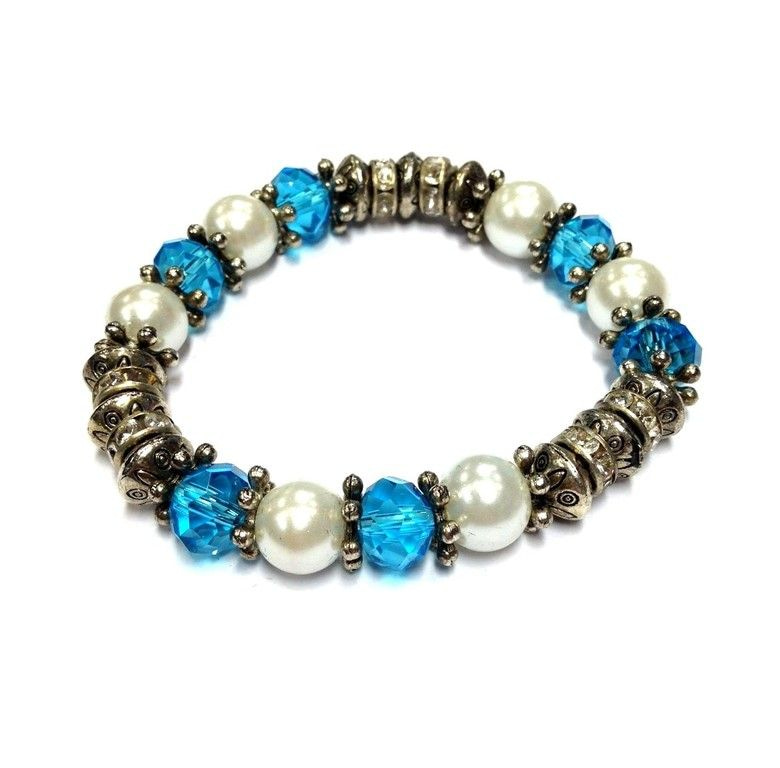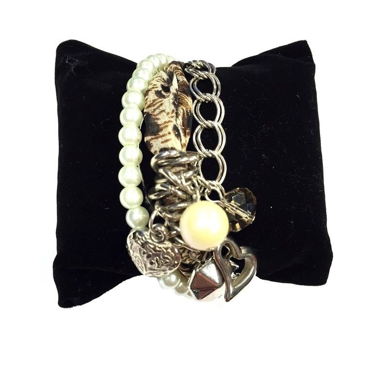 S_89906 - Art.nr: 89906 - LOOK SILVER PEARL / RHINESTONE BRACELET (4pc)