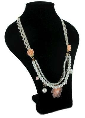 S_89612 - Art.nr: 89612 - NECKLACE LACE / PEARL (4pc)