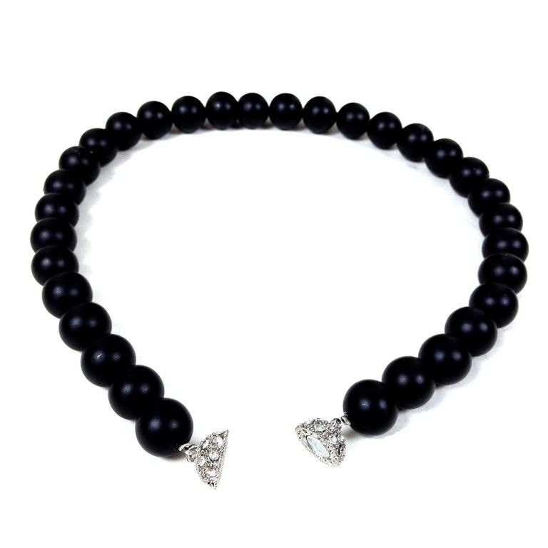 S_89731 - Art.nr: 89731 - NECKLACE BLACK / WHITE STONE (3pc)