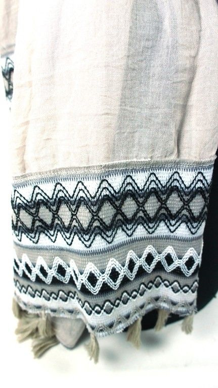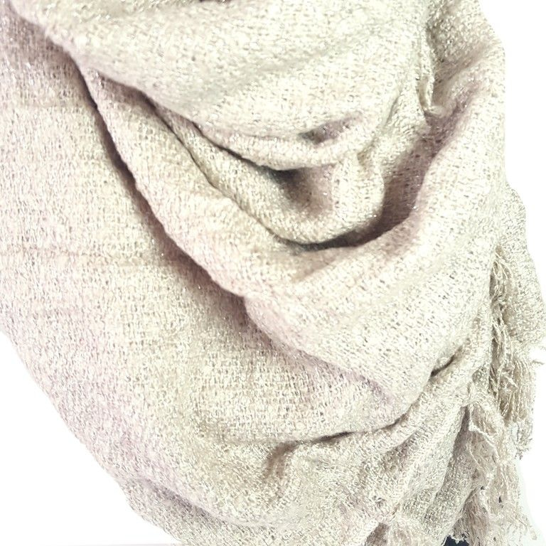 S_2606503 - SCARF / SHAWL LIGHT TAUPE with tassels - MODEL SILVER WIRE (1st)