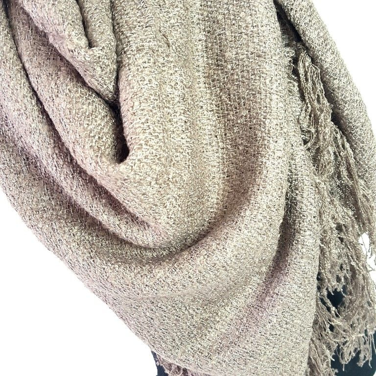 S_2606504 - SCARF / SHAWL TAUPE with tassels - MODEL SILVER WIRE (1st)