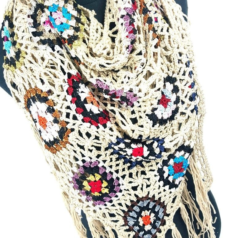 S_6118783G - TRIANGLE SCARF / SHAWL CROCHET - CREAM (1st)