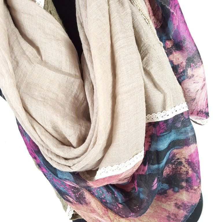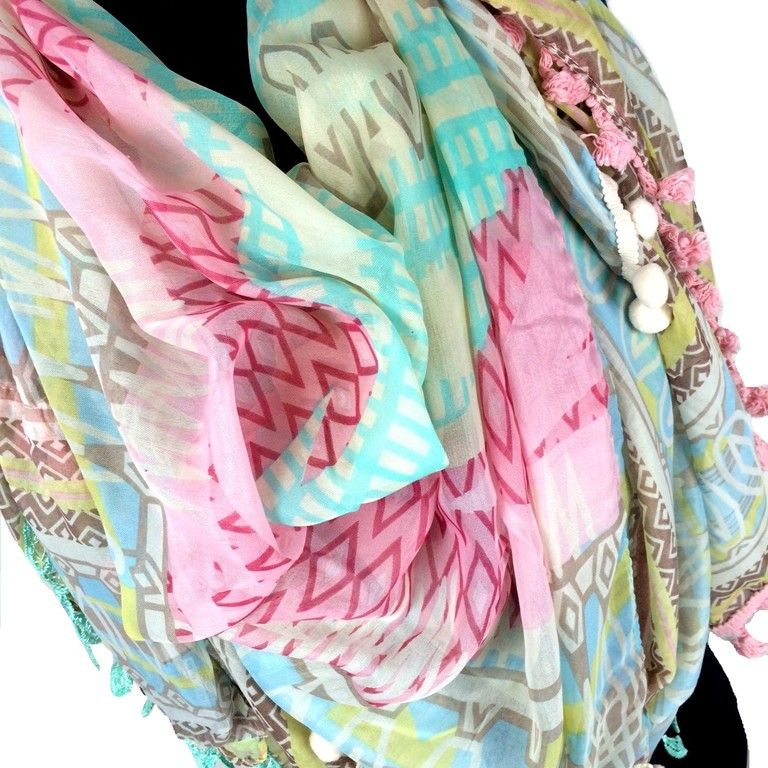 S_2394303 - LUXURY SCARF with tassels / SCOOPS PINK / BLUE (1st)
