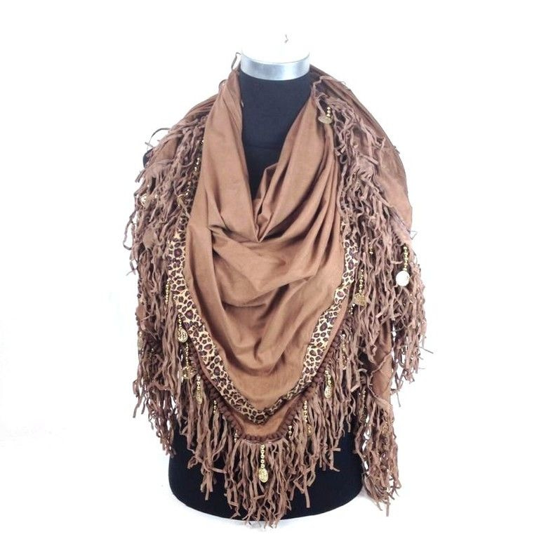 S_2302500 - LUXURY BROWN suede TRIANGLE SCARF TIGER WITH SCOOPS, FRILLS and mints (1st)