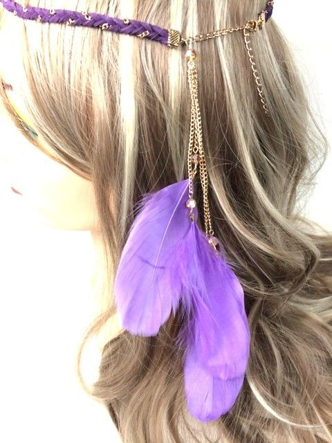 S_600026B - IBIZA LOOK BRAIDED HAIR BAND WITH FEATHERS PURPLE (1st)