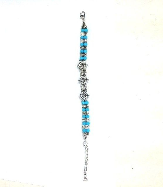 S_600620Y - BRACELET SILVER LOOK / TURQUOISE (12pcs)