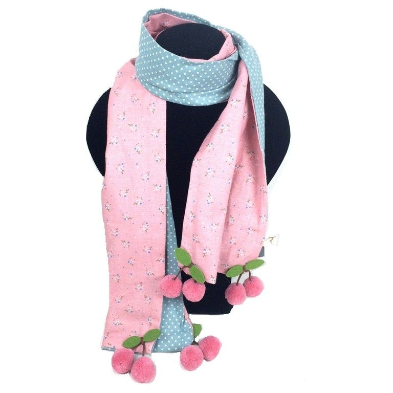 S_811907A - SCARF WITH SCOOPS PINK / BLUE (1st)