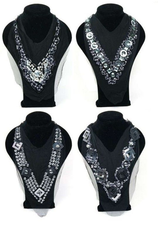 S_87137 - BEAUTIFUL NECKLACE / SCARF WITH STUDS AND BEADS - BLACK (8st)