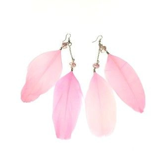 S_600761C - EARRINGS FEATHERS WITH BEADS PINK / PINK (1st)