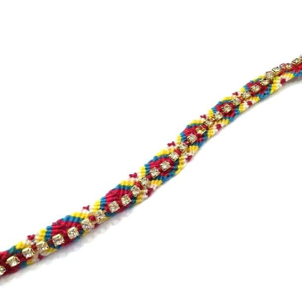S_600043B - IBIZA LOOK BRACELET BRAIDED COLOR MIX WITH STRASS (4st)