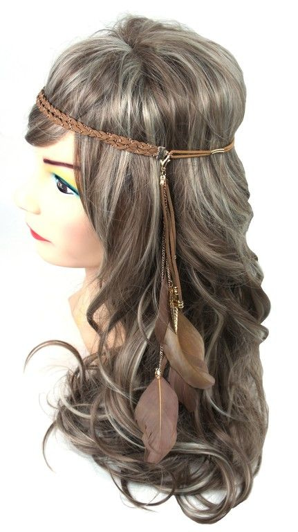 S_600112B - IBIZA LOOK BRAIDED HAIR BAND WITH FEATHERS BROWN (1st)