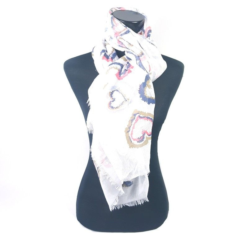 S_6190804F - SCARF WITH HEARTS WHITE (1st)