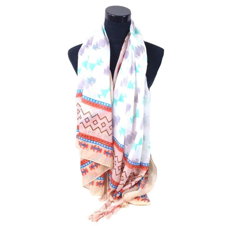 S_2373005 - LUXURY SCARF AZTEK prints with tassels CREAM (1st)