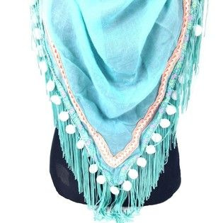 S_2371402A - LUXURY TRIANGLE SCARF WITH FRILLS MINT BLUE WITH WHITE BULLETS (1st)