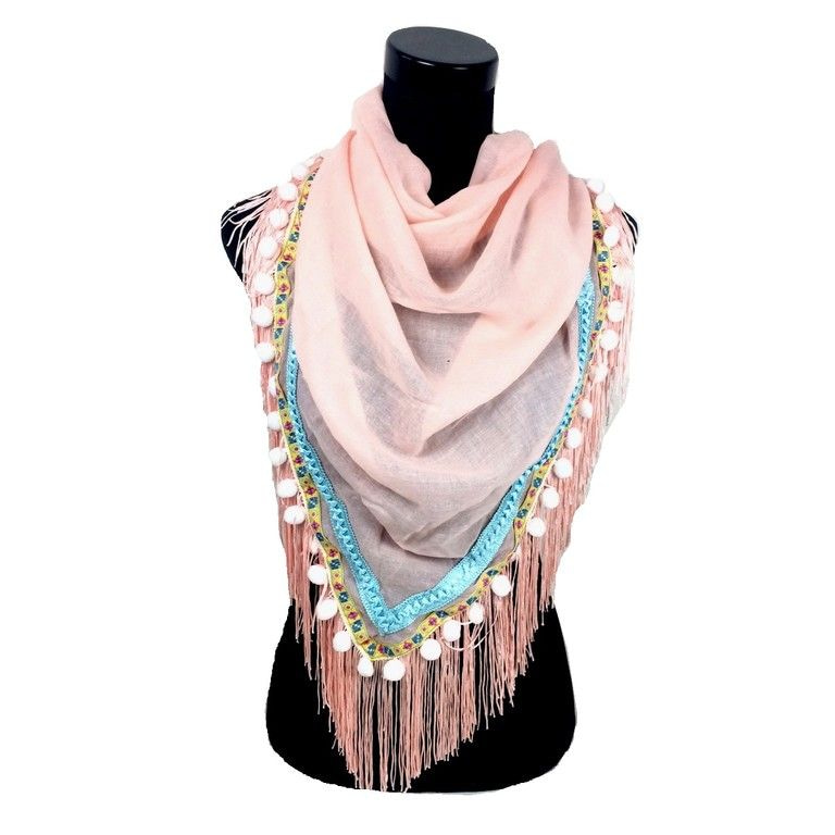 S_2371508 - LUXURY TRIANGLE SCARF WITH FRILLS SCOOPS AND SALMON / PINK (1st)